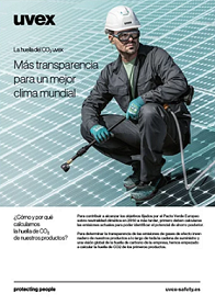 uvex calcula la huella de carbono de sus productos utilizando la metodología descrita en la norma internacional ISO 14067. Calculamos la huella de carbono utilizando el software SimaPro y el modelo de sistema de corte de la base de datos ecoinvent, la información que recabamos de nuestros proveedores y los conjuntos de datos basados en nuestras propias mediciones. El método de cálculo corresponde en resumen: IPCC 2021 GWP 100a (basado en ISO 14067) SimaPro 9.4.02 Base de datos ecoinvent 3.8. Alcance: de la cuna al cliente. Los valores de CO2 indicados se aplican al periodo de cálculo y pueden estar sujetos a cambios permanentes.