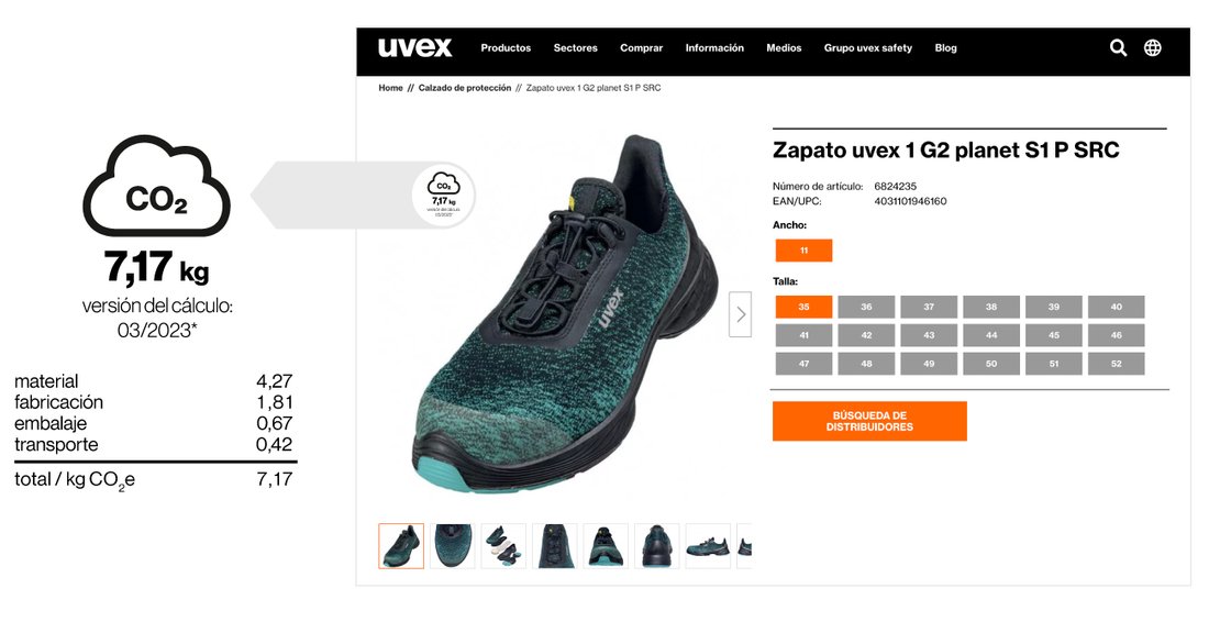 Para que las emisiones de gases de efecto invernadero de nuestros productos a lo largo de toda la cadena de distribución sean transparentes y nuestros clientes tengan una visión completa de la huella de carbono de su empresa, calculamos la huella de CO2 de los productos. uvex calcula la huella de CO2 de los productos siguiendo el método establecido en la norma ISO 140671.
