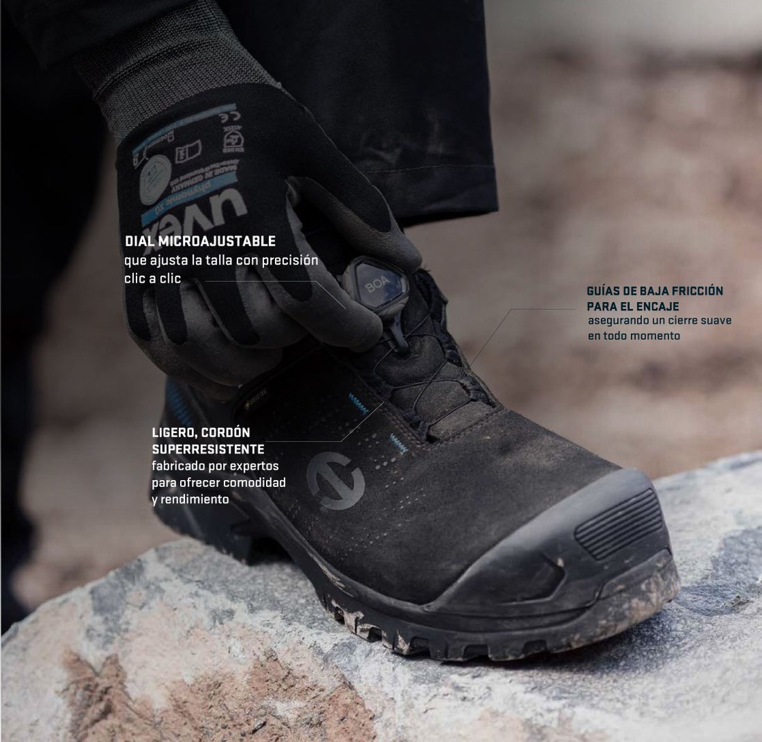 El sistema de ajuste BOA® ha revolucionado el sistema tradicional de cordones. Inicialmente desarrollado el mundo del deporte, BOA® desarrolla múltiples sistemas de cierre para calzado de seguridad adaptados a diferentes entornos y aplicaciones, proporcionando un ajuste seguro y una mayor seguridad para todos los profesionales.