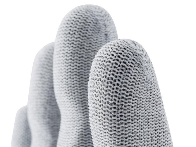 Además de la revolucionaria tecnología textil HEIQ VIROBLOCK de CHT, nuestros guantes de seguridad uvex phynomic silv-air grip cuentan con puntos de PVC transparentes en las áreas de contacto principales. Esto proporciona un mejor agarre en entornos secos.